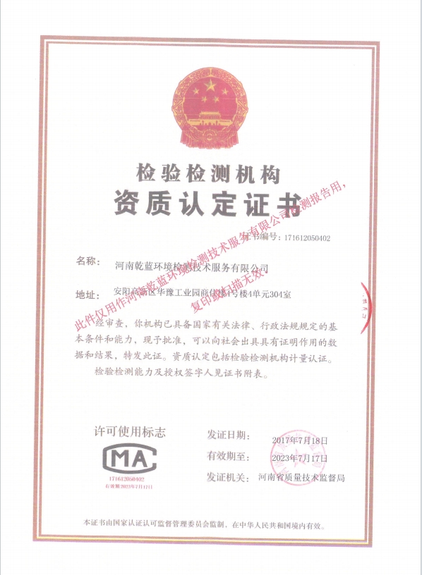 河南乾藍(lán)環(huán)境監(jiān)測技術(shù)服務(wù)有限公司