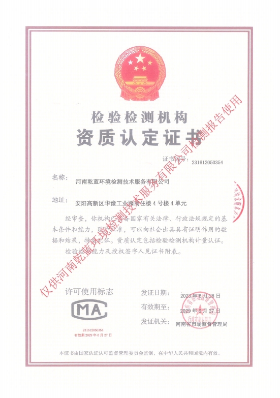 河南乾藍(lán)環(huán)境監(jiān)測技術(shù)服務(wù)有限公司